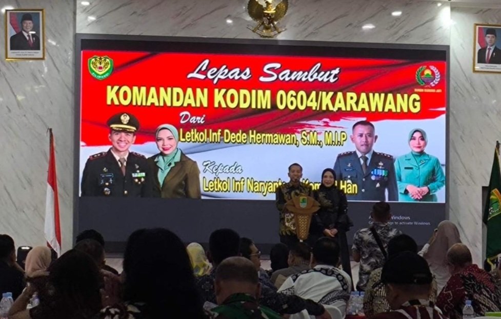KARAWANG Berita Yudha Id. | Letkol Inf Naryanto S Kom  M Han resmi menjabat Dandim.0604 Karawang mengantikam Letkol.Inf  Dede Hermawan, S.M., M.I.P. usai lepas sambut. yang dihadri Bupati Karawang H Aep Syaepuloh Ketua DPRD H Endang Sodikin , Kapilres  Karawang .Kejari Wabup H Maslani.Sekda Aang Rahmatullah ,  dan FKUB , serta  elemen terkait  lainnya bertempat di  Aula Husni Hamid Pemkab Karawang Rabu  (2/7/2025)