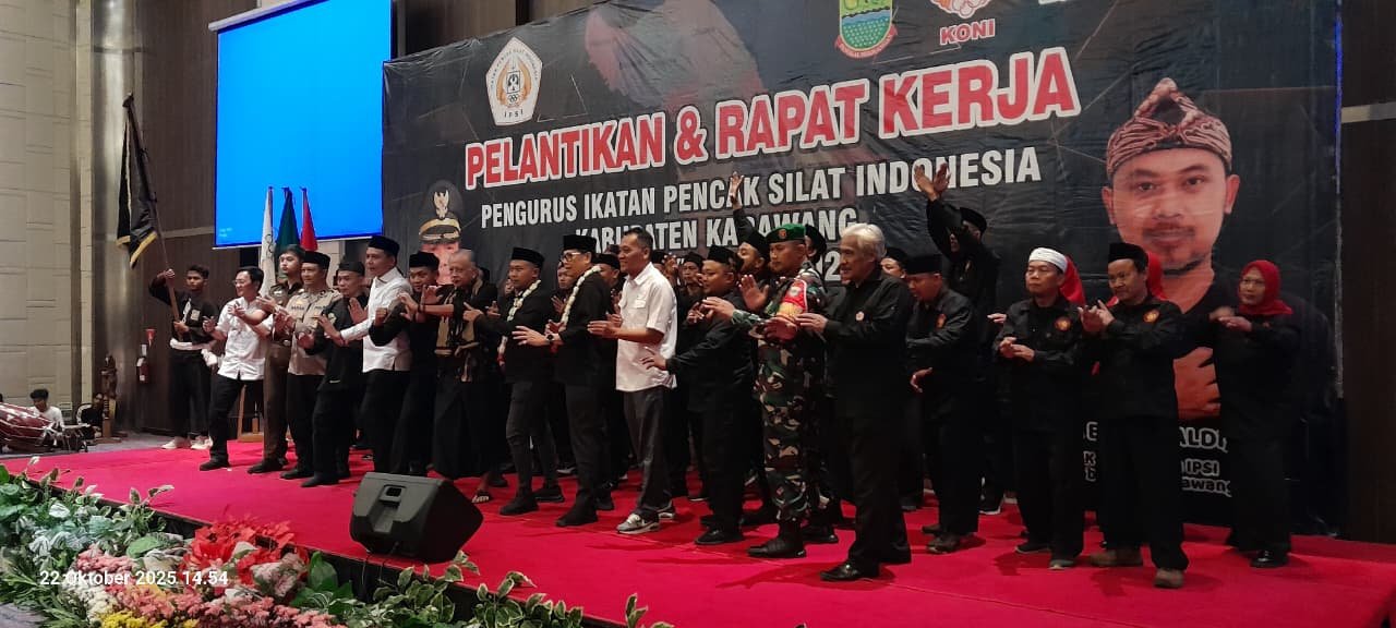 KARAWANG BeritaYudha.Id | Ikatan Pencak Silat Indonesia (IPSI) Kabupaten Karawang menggelar kegiatan Pelantikan dan Rapat Kerja (Raker) pengurus periode 2025–2028 bertajuk “IPSI Karawang Huma Bentang Melesat Tandang Makalang”, pada Rabu siang (22/10/2025) di Hotel Mercure Karawang, Jalan Galuh Mas Raya, Kabupaten Karawang, Jawa Barat.