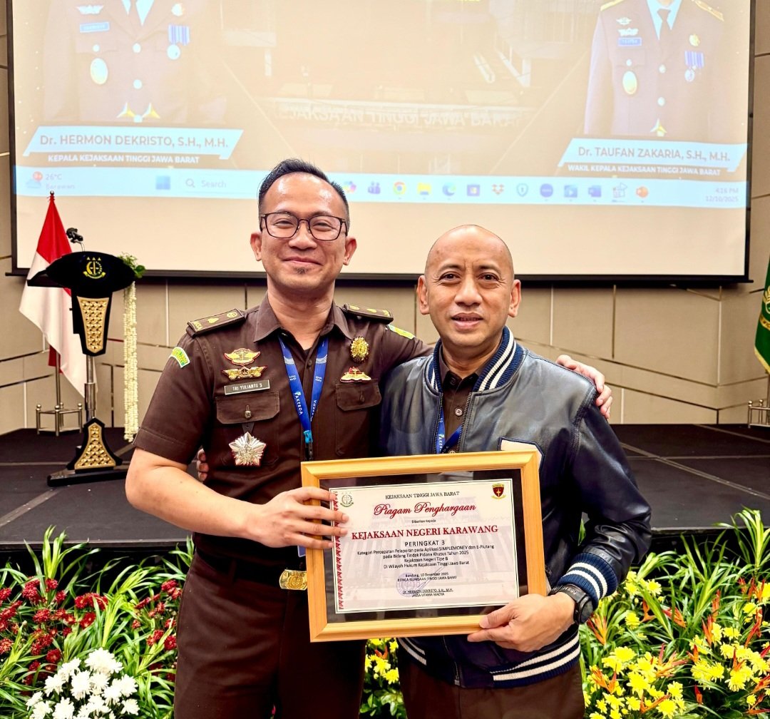 KARAWANG BeritaYudha Id | Kepala.Kejaksaan Negeri Karawang Dedy Irwan Virantama, S.H., M.H. bersama Tri Yulianto Satyadi, S.H. (Kepala Seksi Tindak Pidana Khusus) Mendapatkan Peringkat 3 (tiga) dalam Rapat Kerja Daerah (RAKERDA) Kejaksaan Tinggi Se-Jawa Barat Tahun 2025, melalui bidang Seksi Tindak Pidana Khusus Rabu (10/12/25)